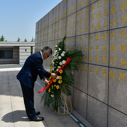 走進(jìn)紀(jì)念館園區(qū),首先映入眼簾的是一座高大的紀(jì)念碑,游擊隊(duì)?wèi)?zhàn)士持槍沖殺的鑄銅人物塑像矗立于紀(jì)念碑頂端。黨員代表向紀(jì)念碑敬獻(xiàn)花籃,黨委副書(shū)記孫倫同志整理挽聯(lián)后,帶領(lǐng)全體黨員、同志默哀行禮,致敬不怕?tīng)奚?、頑強(qiáng)斗爭(zhēng)的革命先輩,現(xiàn)場(chǎng)氣氛莊嚴(yán)肅穆,在共同追思中緬懷英雄先烈。